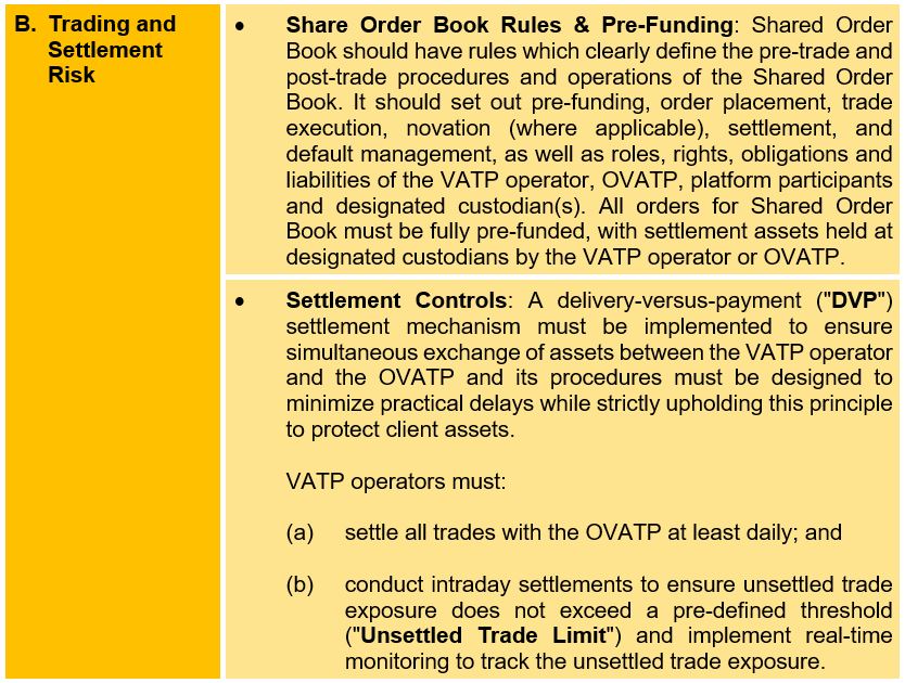 The new framework permits SFC-licensed VATP operators to combine their orders with those of global affiliate virtual asset trading platform operator ("OVATP") into an aggregate shared liquidity pool, enabling order matching and execution across platforms ("Shared Order Book"). However, the framework introduces settlement exposure and increases operational complexity of market surveillance.