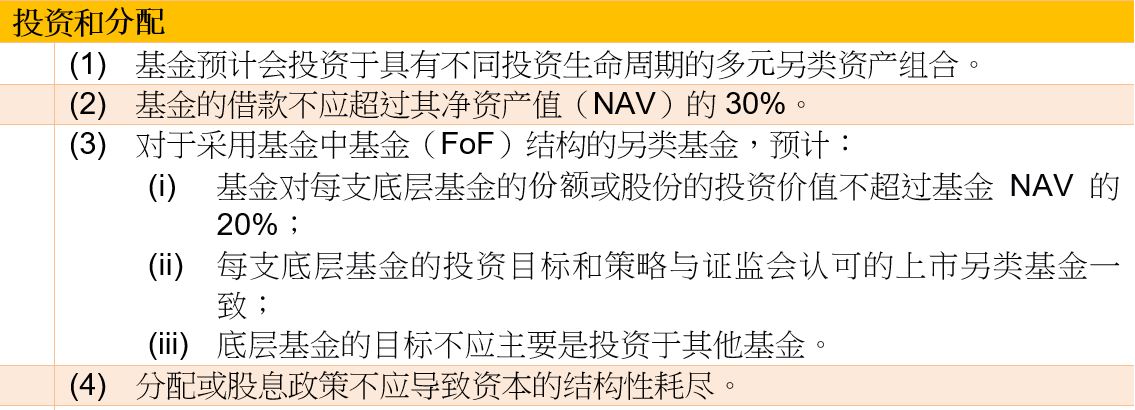 要成为上市另类基金,合格的另类基金及其发售文件必须获得证监会的认可,并在港交所挂牌。下表列出了根据通函获得证监会认可的一些关键要求。