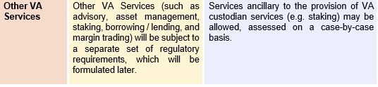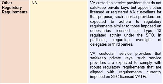 SFC-licensed intermediaries or banks providing VA-related services to its clients are required to hold the client VAs in custody with (i) SFC-licensed VATPs and (ii) banks or subsidiaries of locally-incorporated banks.