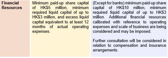 For banks and stored value facilities ("SVFs"), the approach in the division of regulatory and supervisory responsibilities of the SFC and Hong Kong Monetary Authority ("HKMA") of which will follow that of the securities business of banks, where the HKMA will be the frontline regulator.