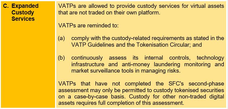 The Second Circular aims to broaden the range of products and services that can be offered by the SFC-licensed VATP, which forms a key part of the "Products" pillar of the SFC's ASPIRe roadmap.
